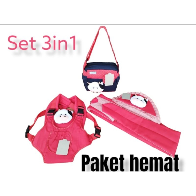 tas,gendongan depan, gendongan samping ,boneka sapi 3in1