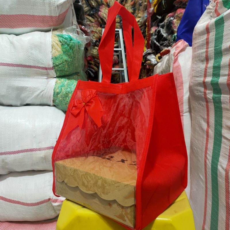Terbuat dari bahan spunbond kombinasi mika ada perekat di bagian atas tas
