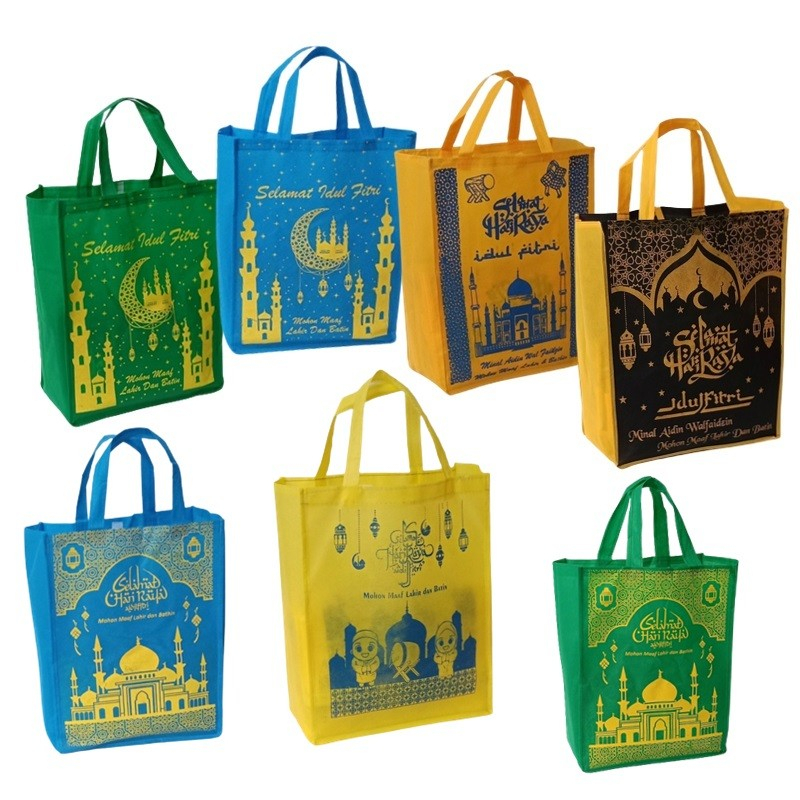 Merupakan tas tenteng goodie bag dengan desain elegan bernuansa lebaran, sangat cocok buat bingkisan lebaran, parcel lebaran dengan bertuliskan selamat hari raya idul fitri. sebagai alat tempat barang/sesuatu guna keperluan sehari-hari, dan dapat di isi berbagai macam barang