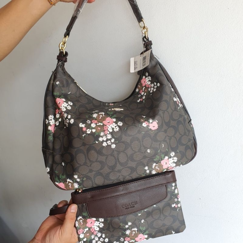 Coach Hobo Shoulder Bag Printed Floral set pouch bisa selempang W92702