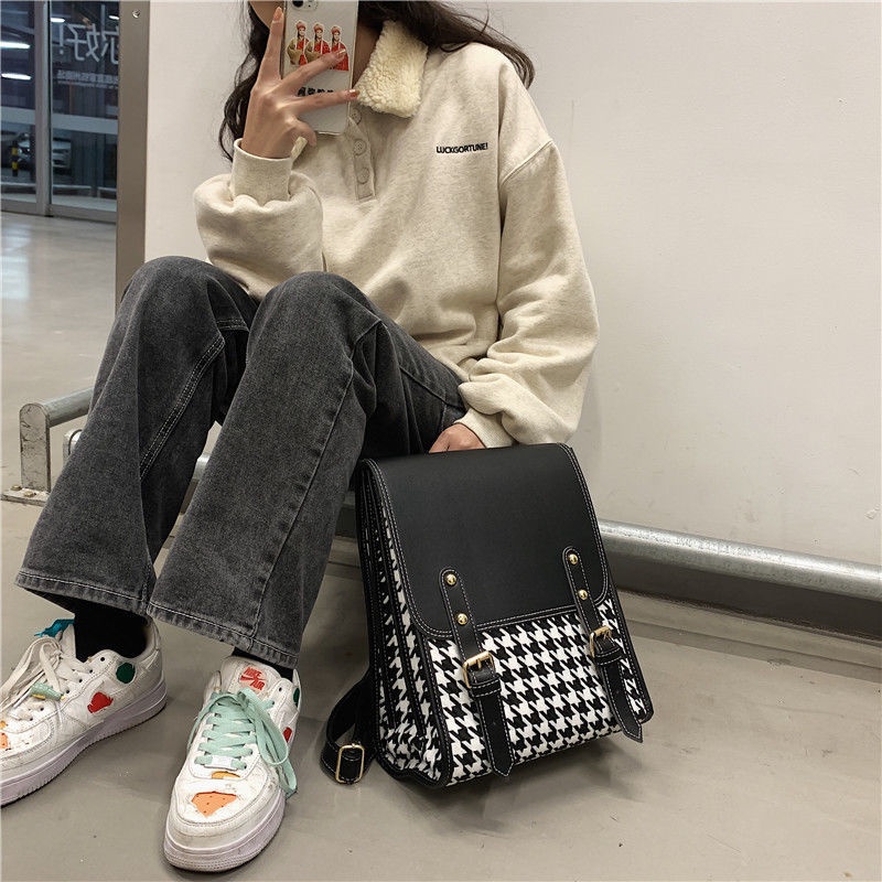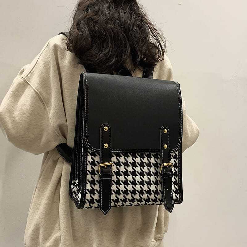 Tas Wanita > Ransel Wanita > ℡✻Tas Houndstooth Tas Travel Tas Sekolah High-End Tas Sekolah Siswa Sekolah Menengah Ins Siswa Sekolah Menengah Pertama Ransel Kampus Versi Korea