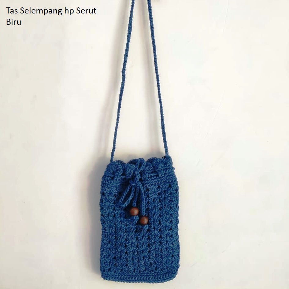 TAS RAJUT SERUT. TAS HANDPHONE. TAS HP SELEMPANG RAJUT SERUT NILON WARNA BIRU Riens Collections