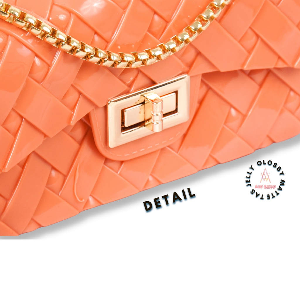 Detail Tas Jelly Glossy Motif Anyam Size 18 Cm Rantai Gold