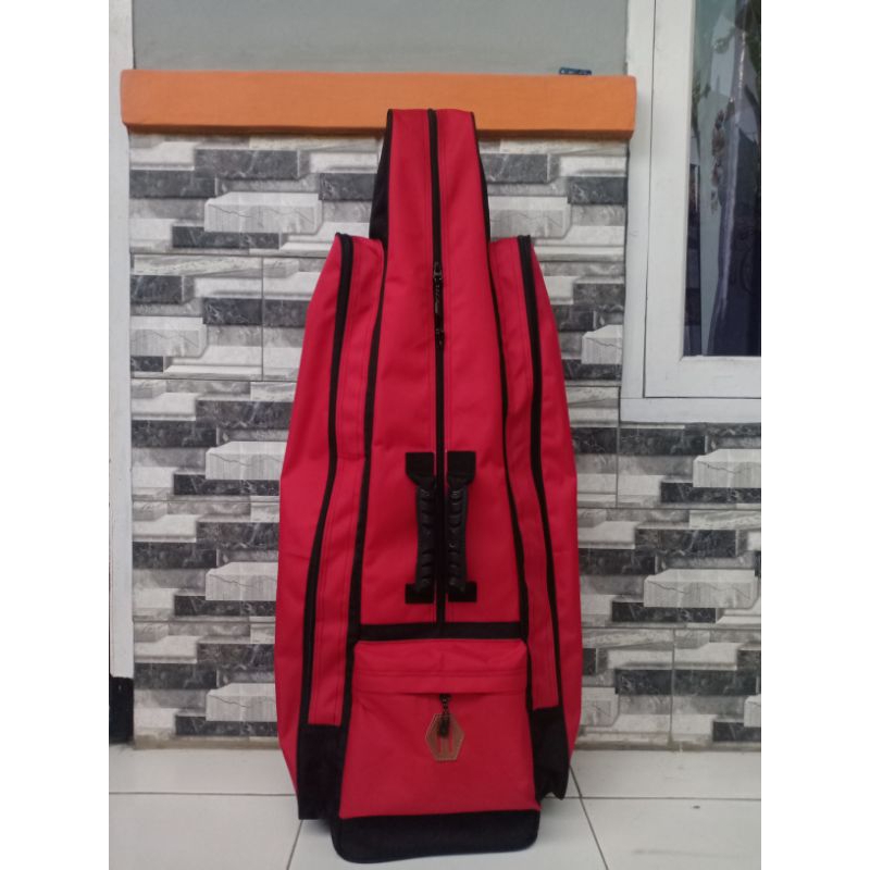tinggi 100cm lbr bwh 27x21cm bahan kordura, anti air, dilapis,tebal, tidak luntur, kulitas jahitan kuat. muat semua peralatan mancing anda. mulai dari 5set joran. dudukan joran. ember. hamock. tikar gulung. peralatan kail. koja.serokan .