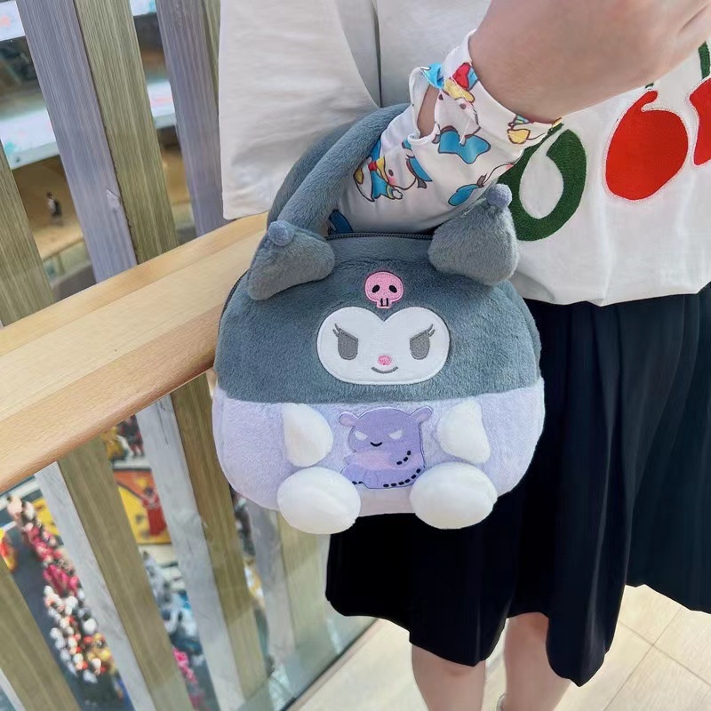 TAS KARAKTER BONEKA ANAK MELODI LOTSO PACHA HELLO KITTY KUROMI LUCU Bahan Bulu Bludru Plush Toy Doll Fluffy Fur Sling Bag Gemoy Kekinian