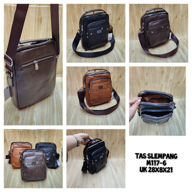 Tas selempang MB 117-6 bahan kulit tebal dan lentur sz 28x8x21 dalam lapis kanvas full emboss zipper emboss tali strap sudah embos 1 kantong besar depan 1kantong belakang ada res top handle dustbag import premium