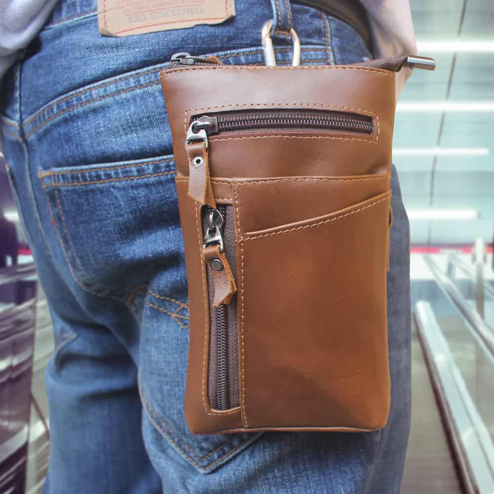 dompet pinggang pria WAIST BAG Double Fungsi= Gantung + Tas Pinggang gadget HP KULIT SAPI ASLI