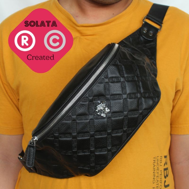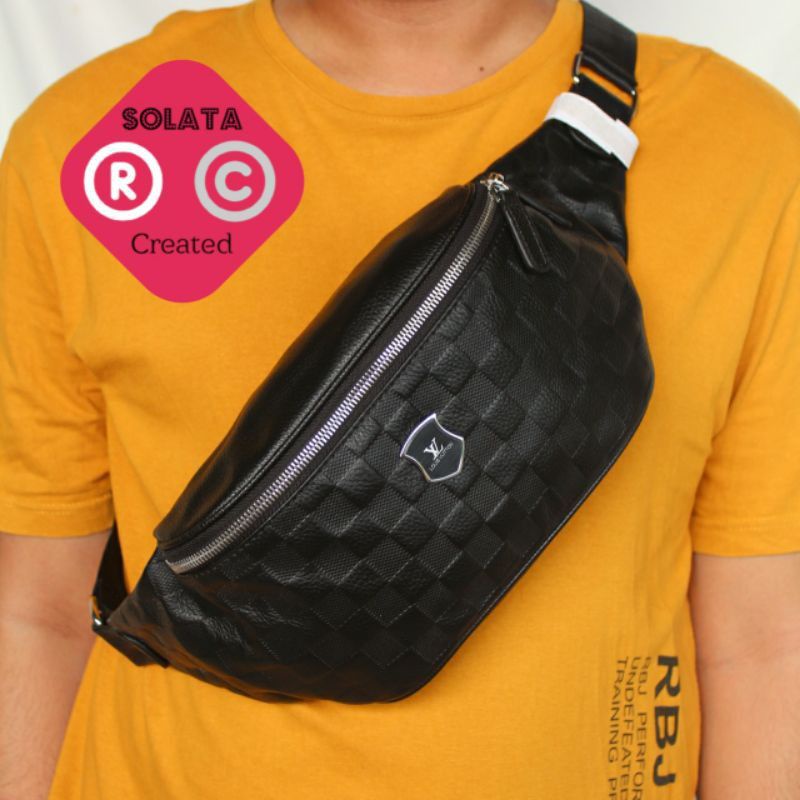 Detail tas kulit pria slempang / waistbag pria kulit import