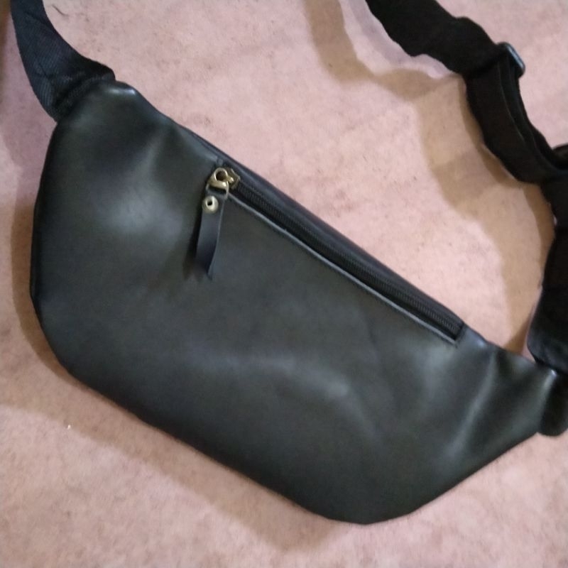 BACA DULU SEBELUM MEMBELI. as waist bag ber bahan kulit asli cocok untuk pria dan wanita ukuran tas: tinggi 15 cm lebar: 32 ukuran tali panjang 100 cm standar ukuran tas waist bag lebar tali 3,8 cm. penutup tas ada tiga bagian resleting resleting depan resleting utama dan resleting belakang