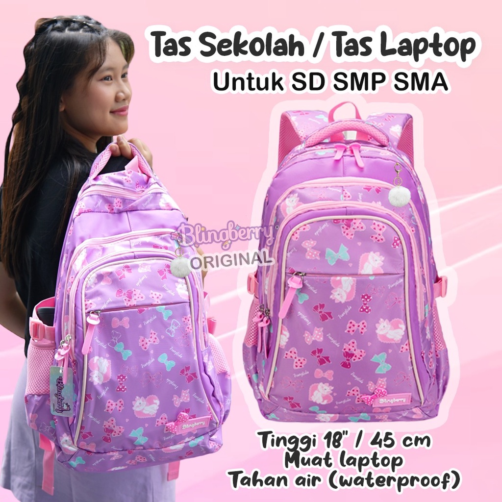 Fashion Bayi & Anak > Tas Anak Perempuan > Ransel > Tas Laptop Ransel Laptop Backpack Karakter Kitty Cat Tas Sekolah SD SMP SMA Waterproof ANTI AIR Tas Blingberry Original Import Tas Blingberry Grosir