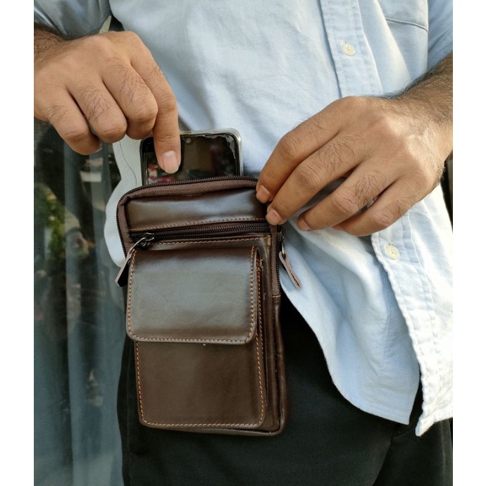 Detail Tas Mini Hp pinggang Jack Kulit Sapi asli 100% Bergaransi