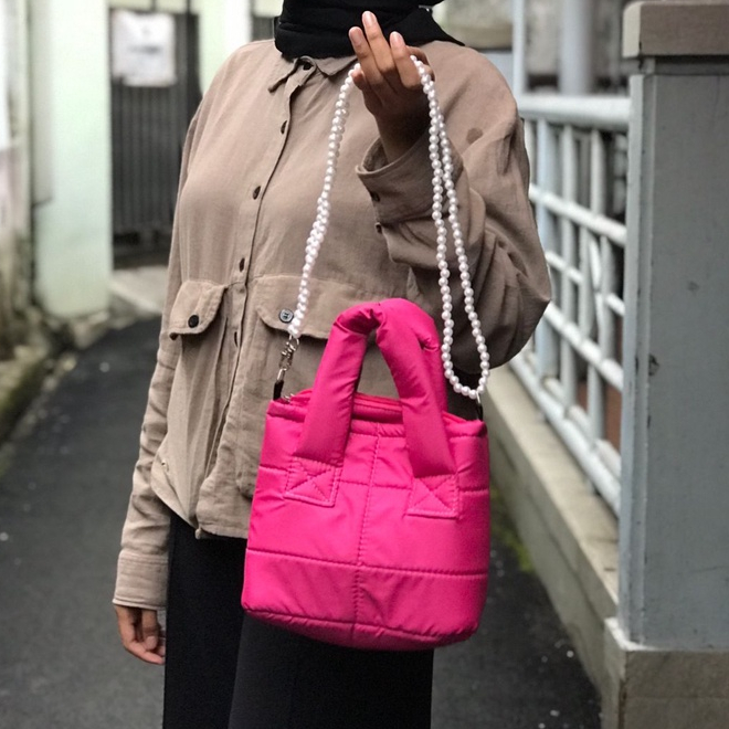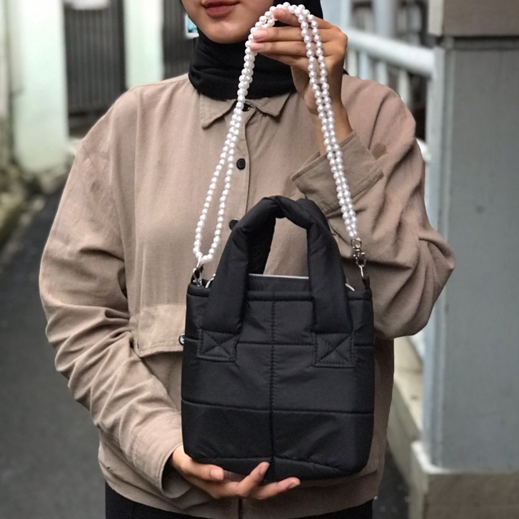 Detail Tas Mini Selempang Wanita Puffy Karens Tali Mutiara Imitasi Korean Style
