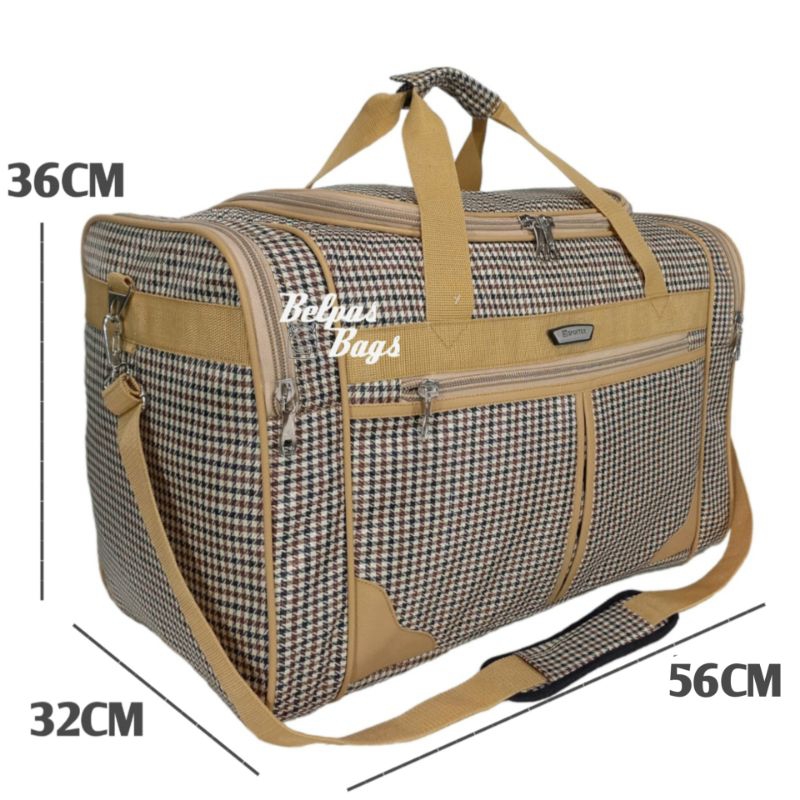 « Ruang Utama yang luas « Resleting double dengan buka melingkar « satu saku depan « dua saku kanan dan kiri « Bahan Nylon Dolby « Tas double fungsi, jinjing dan selempang « Tas travel model Classic « Resleting nomor 10 kuat dan tahan lama « Design trendy « Dimensi ukuran PxLxT (56x 32x 36)cm « Travel Bag Original sportex