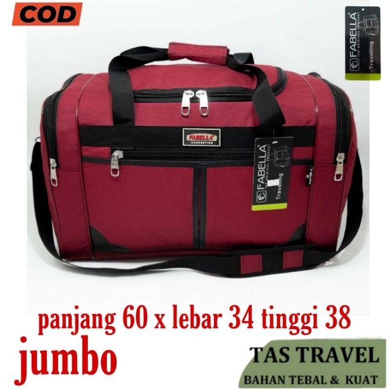 Travel Bag dari fabella terbuat dari bahan nilon yang tebal, mempunyai ruang penyimpanan yang cukup besar dan luas untuk membawa semua perlengkapan dan barang-barang Travelling Anda. Retsleting Tas melingkar sehingga memudahkan Anda Dalam menyusun barang-barang yang akan dibawa bepergian.