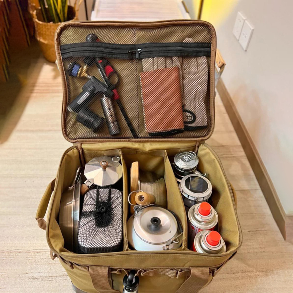 Saat camping tentunya Anda akan membawa banyak barang untuk memenuhi kebutuhan selama di alam terbuka. Yang Anda butuhkan adalah tas penyimpanan camping dengan kapasitas besar. hadir dengan tas penyimpanan camping yang memiliki banyak slot untuk menyimpan peralatan camping Anda. Piring, gelas, termos, kompor portabel, senter dan peralatan lainnya mampu ditampung oleh tas yang satu ini. Terbuat dari bahan oxford yang kokoh dan tahan air.