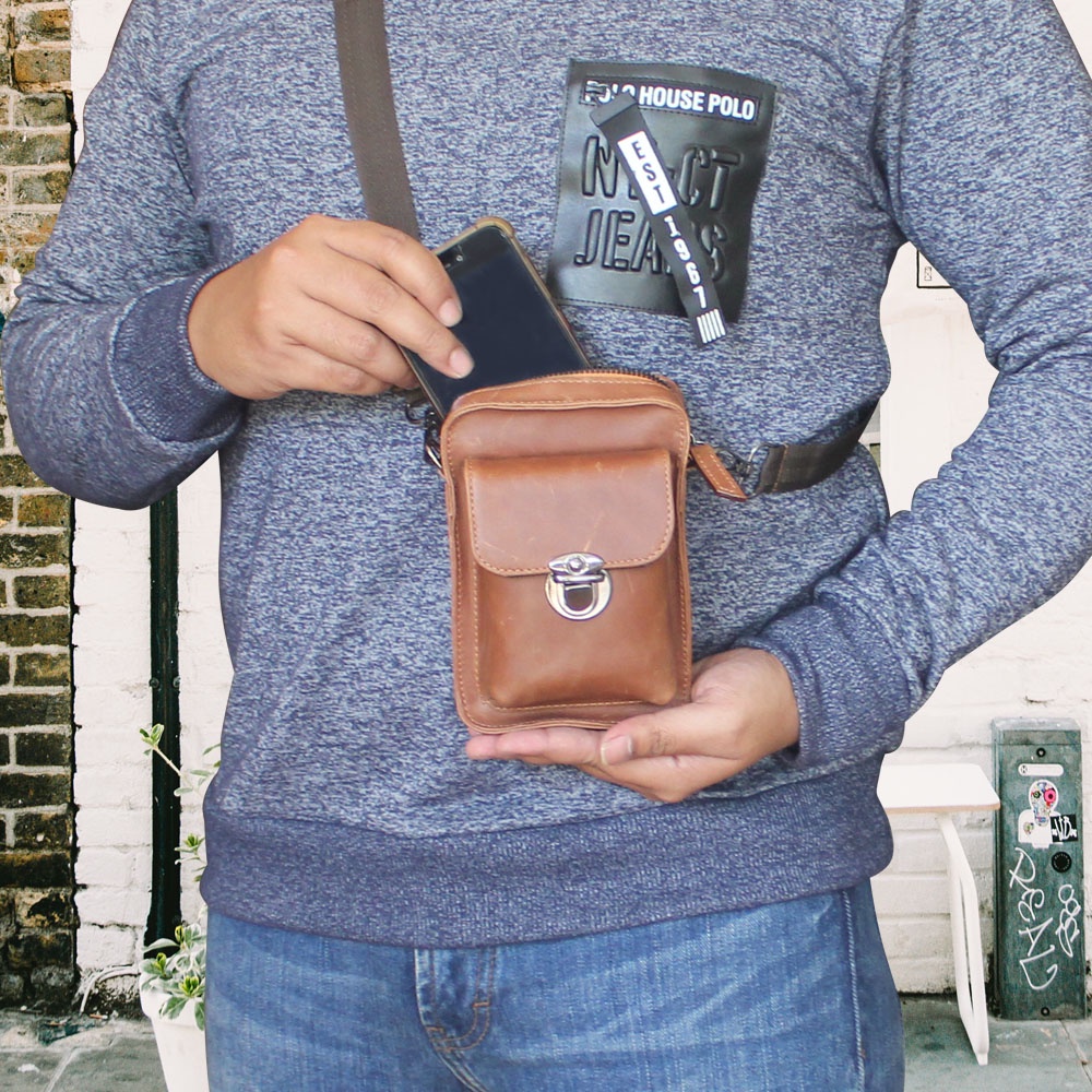 Detail Tas Pinggang Kulit Sapi Asli Tas Pinggang Hp Sling Bag Tas Mini Kulit Sapi Asli P011 BISA COD