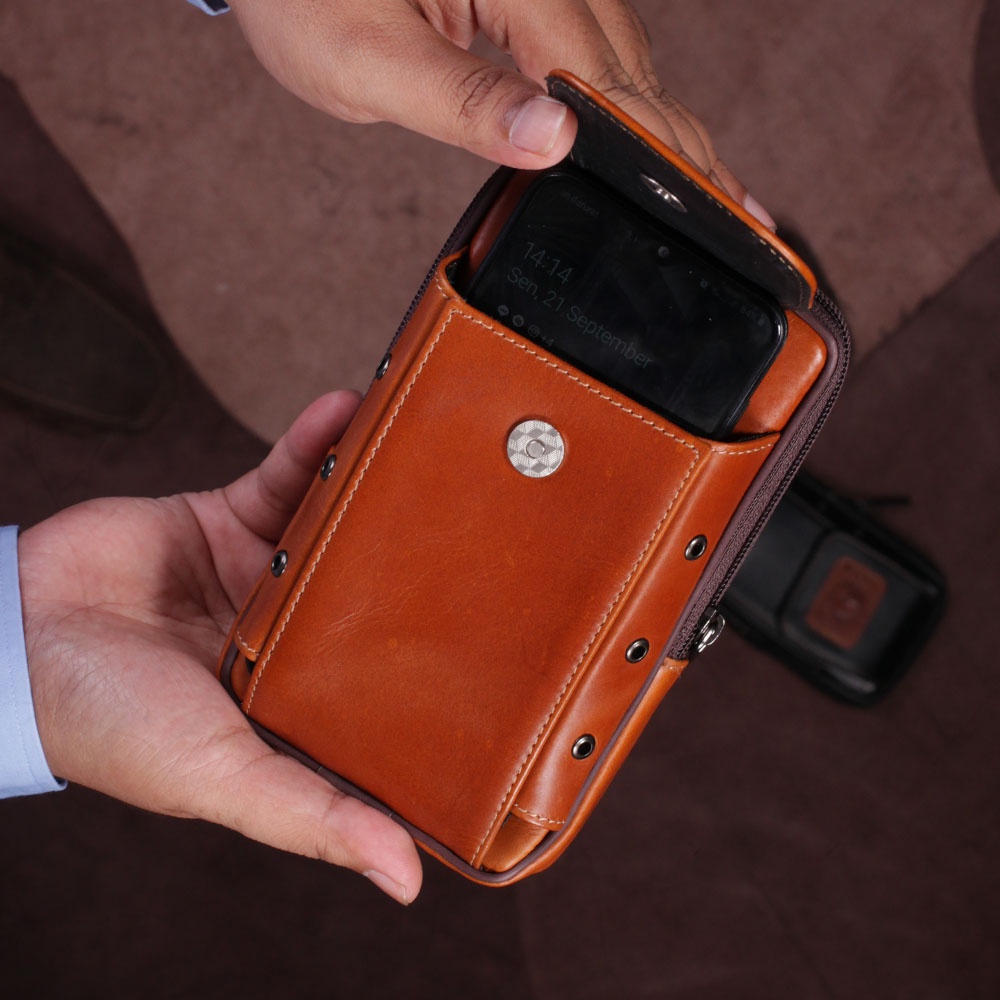 Detail Tas Pinggang Kulit Sapi Asli Handphone Waistbag Tas HP P008 Pinggang Kulit Sapi Asli