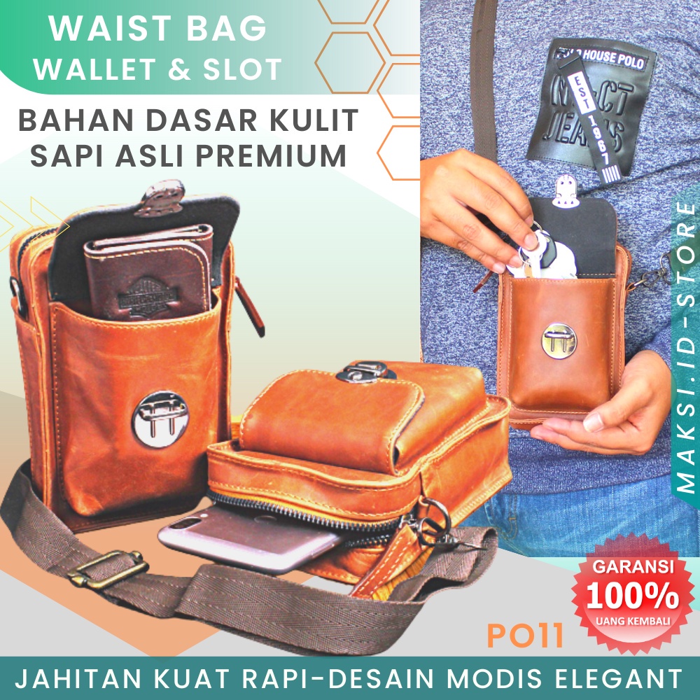 Tas Pinggang Pria Multifungsi Genuine Leather Kulit Sapi Asli Kode P11 Berkualitas Baru