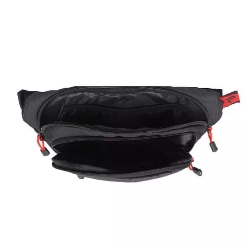 WARNA BLACK HITAM 1 KOMPARTEMEN UTAMA DENGAN ZIPPER 2 KOMPARTEMEN DEPAN DENGAN ZIPPER MATERIAL DENIER MUAT SMARTPHONE 7 IN DIMENSI 37 X 18 X 6 Cm VOL 3 L 100% ORIGINAL PRODUCT
