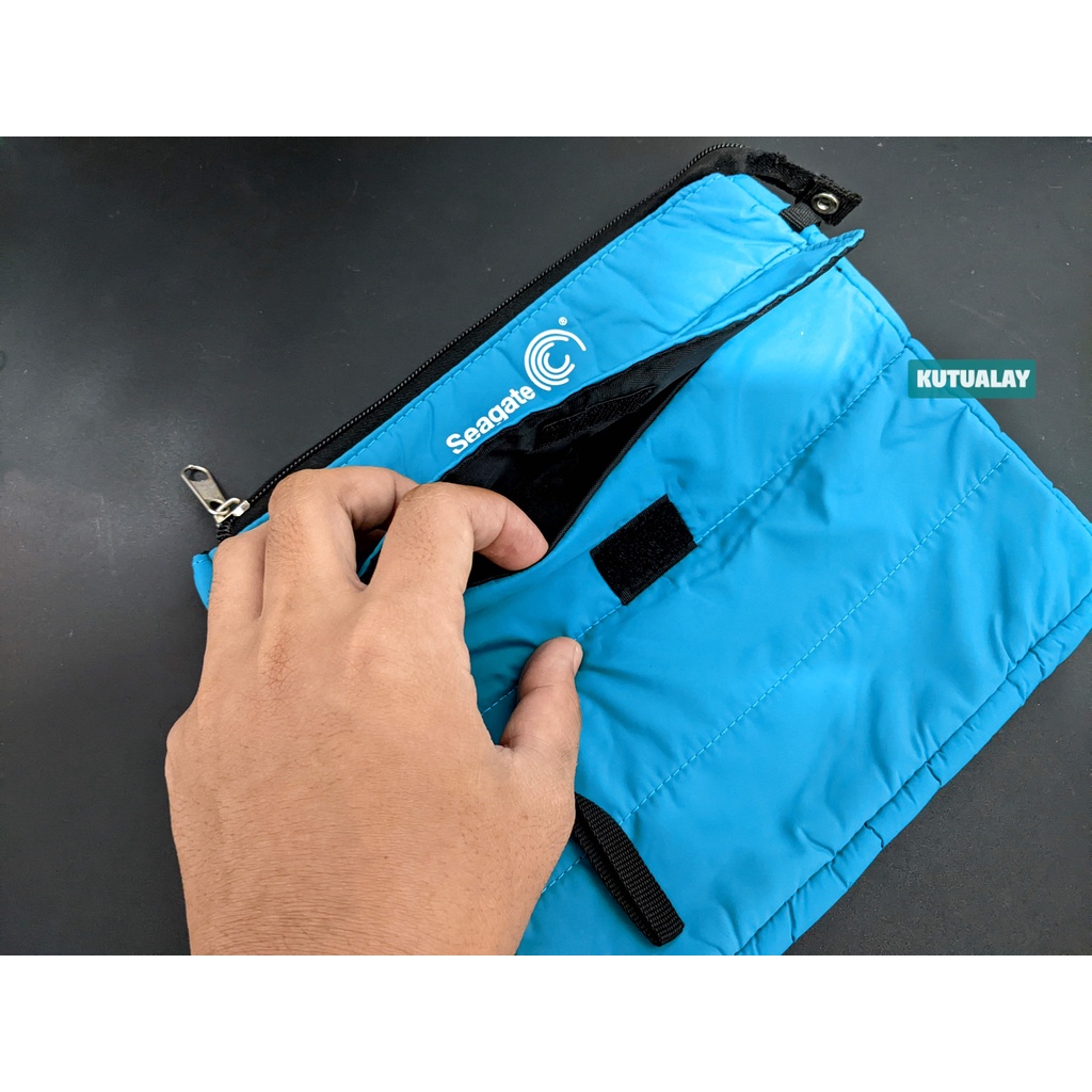 Detail Tas Pouch Seagate Biru Original Merch HDD External Powerbank Tempat Dompet