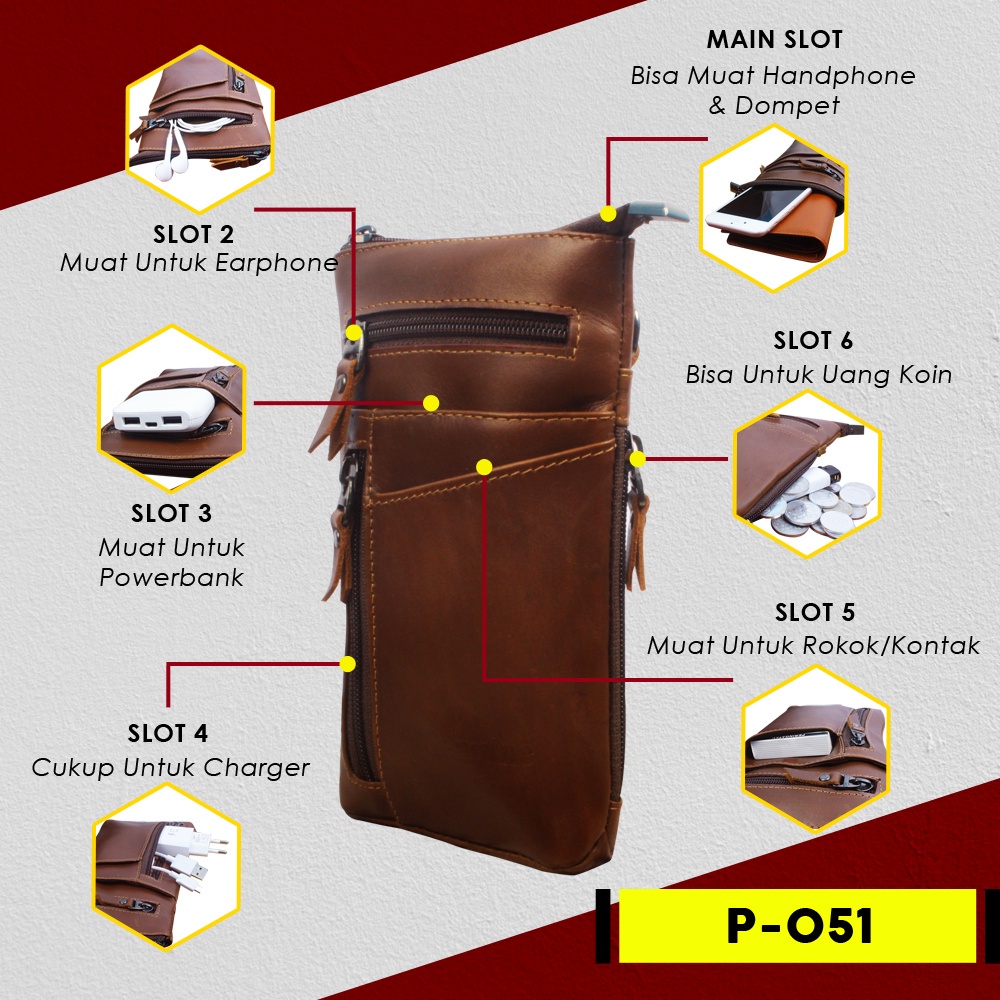 Detail Tas Pria Kulit Sapi Asli Multifungsi Waistbag Kulit Premium Terbaik P051 Tas Selempang Dan Gantung