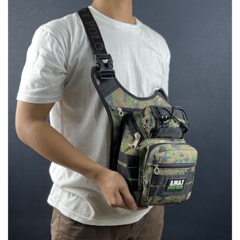 Detail Tas Pria Tactical Military Hitam Polos TAC5501 Tas Selempang Pinggang Paha Militer