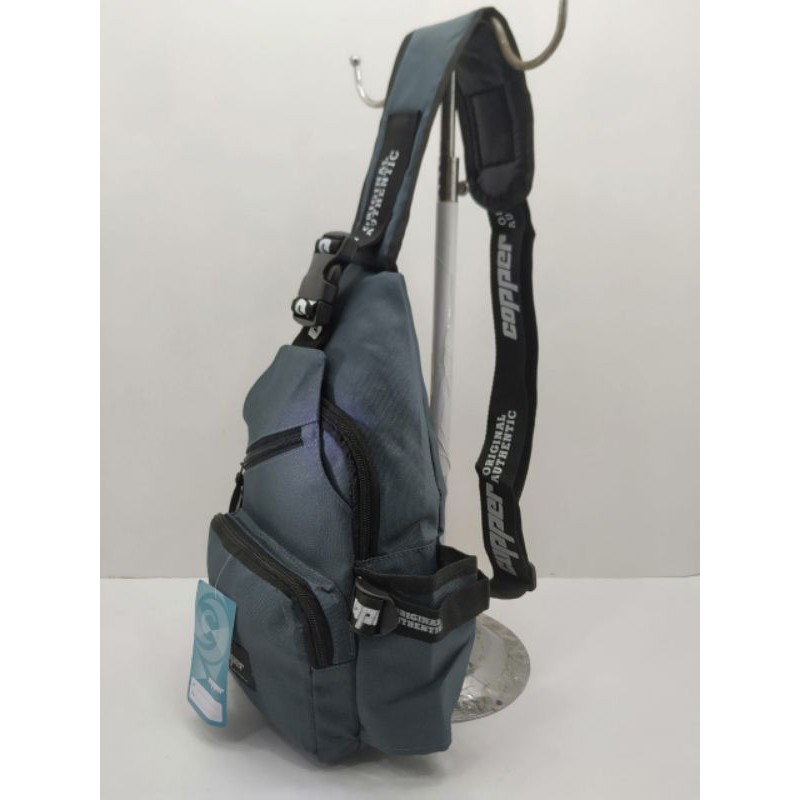Tas Punggung Waist Bag Pria Copper Original produk Bahan kain codura Size T 33x P 18cm x L 9cm slot utama bisa tablet dan dokumen panjang tali gendong 105cm dengan sablon Copper 2 Resleting tambahan dan 1 ruang dalam socket kanan kiri kantong botol dan fungsinya smart buyer and happy shopping .