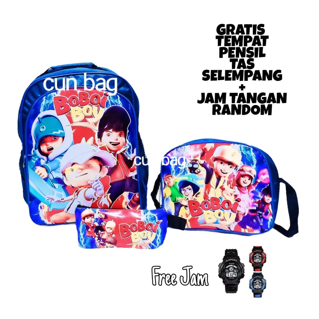 Detail Tas Ransel 3set Karakter boboboy Baru Free Jam Tangan