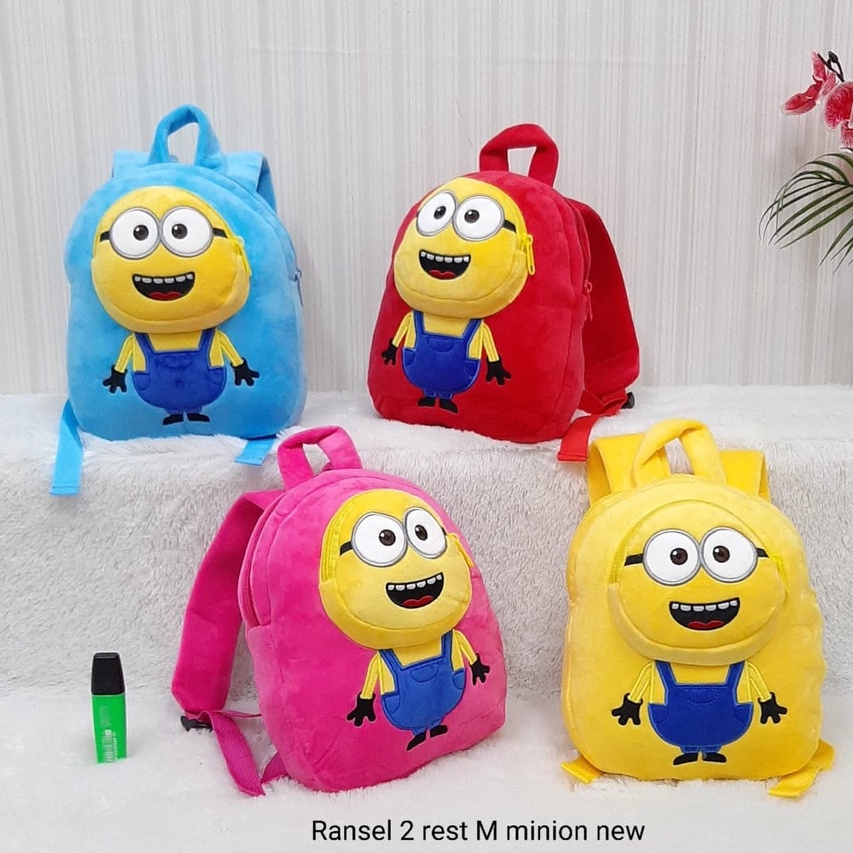 Ransel 2rest M Minion -Foto Asli -Bahan halus -Tinggi 24cm -Berat 160gr -2 resleting -Mudah dicuci