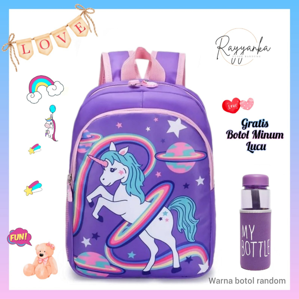 Detail Tas Ransel Anak Perempuan Model Pelangii Un1qorm Gratis Botol Minum Lucu Untuk Paud Tk & Sd