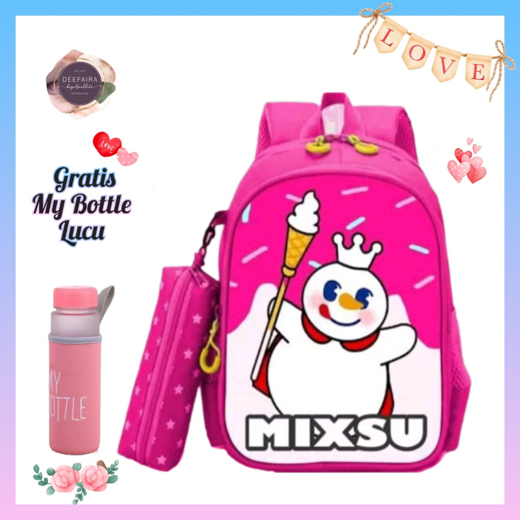 Detail Tas Ransel Anak Perempuan Terlaris Model Sue mixx Gratis Botol Minum Untuk Tk Dan Sd