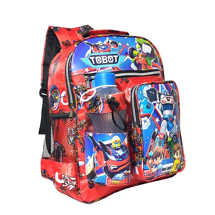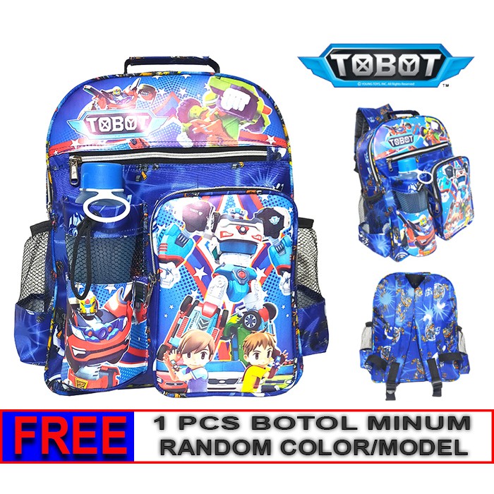 Detail Tas Ransel anak Sekolah TK / SD karakter Tobot free botol // Tas ransel Tobot