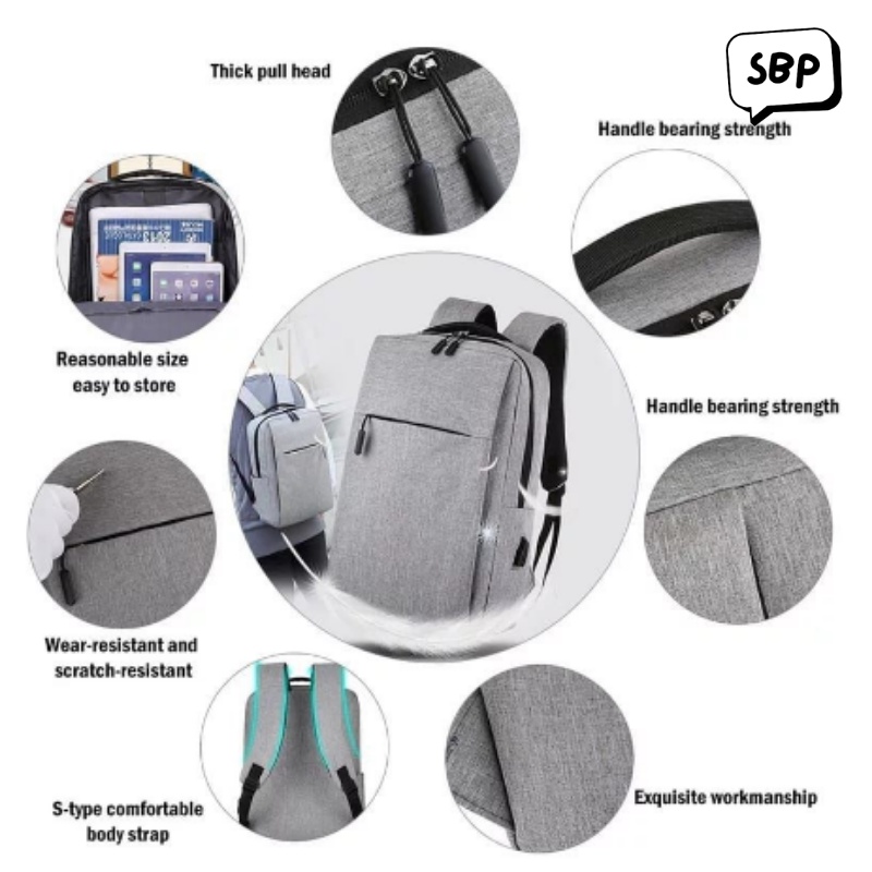 Fiture : - Model Stylish dan Kekinian - Bagian dalam Full lapisan Satin Premium - Terdapat Slot Laptop 14 inch - Kantong tambahan bagian depan - Jahitan Bartex pada tali (Garansi Tali 1 tahun) - Terdapat Port USB dan Gratis Kabel Data