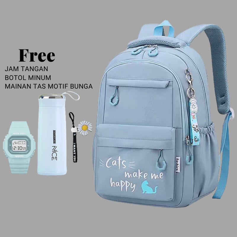 Detail Tas Ransel ''Cats Make Me Happy'' Backpack sekolah Weibo Unisex /Ransel Sekolah Kualiti