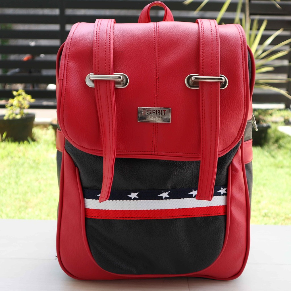 Tas Wanita > Ransel Wanita > Tas Ransel Kampus Sekolah Jalan Kekinian Backpack Espirit Tancepan Warna Merah Bahan Berkualitas Cocok Untuk Sekolah Hangout