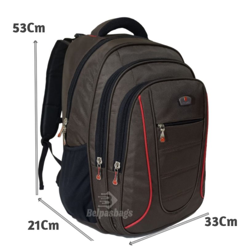 • SPESIFIKASI • ukuran PXLXT 33x21x53cm • Bahan poliester nylon dolby • varian warna hitam Coklat • Terdapat satu ruang utama yg cukup luas dengan sekat penyimpanan laptop. • Dua ruang tambahan dan satu saku sleting • untuk resleting menggunakan no 10 sehingga menambah keunggulan tersendiri • dua saku kiri kanan dengan bahan jaring • tali punggung di lapis busa empuk sehingga nyaman apabila di pakai dengan bawaan berat • free rain cover