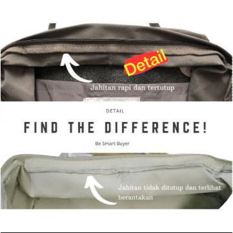 Spek K4NK3N Classic Bahan kanvas waterproof 1 Resleting utama hingga ke bawah tas 1 Resleting depan 2 Slot samping untuk botol atau payung 1 Sekat Laptop