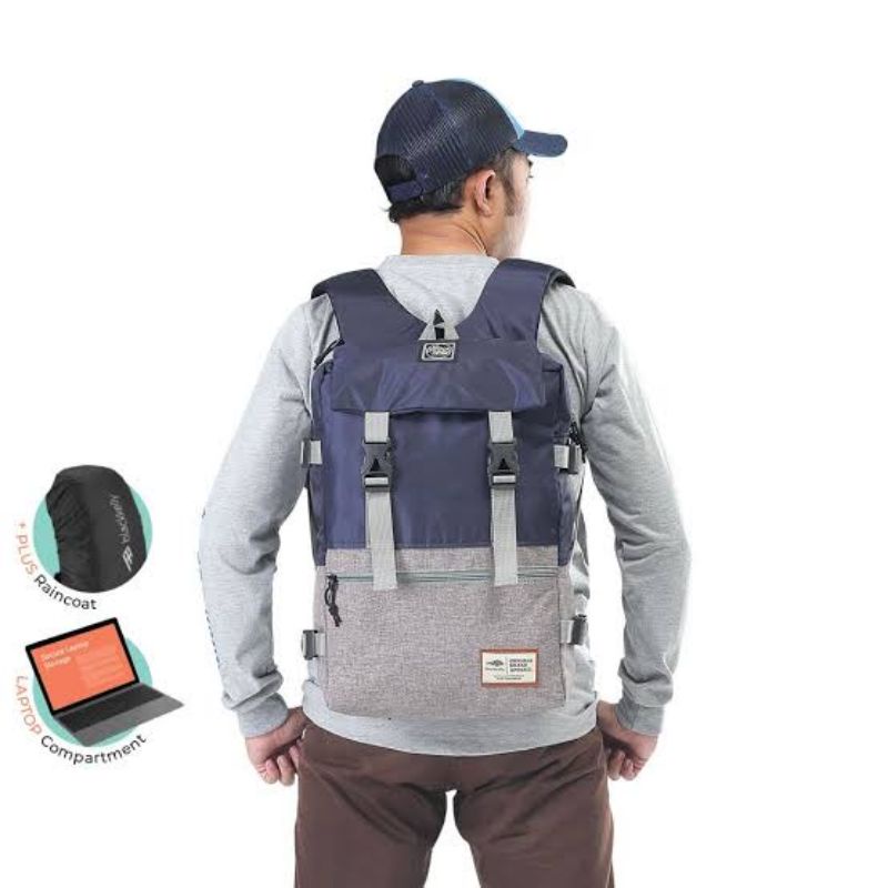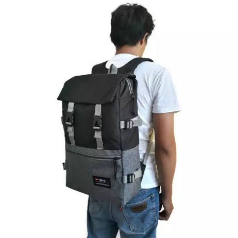 redy tas Ransel Elbrus 25L bahan dinir D300 kombinasi kanvas sise 44x33x18 busa tebel bonua coverbag jas hujan tas latop 14 in masuk redy warna yah kaka cocok buat kerja.skolah dll