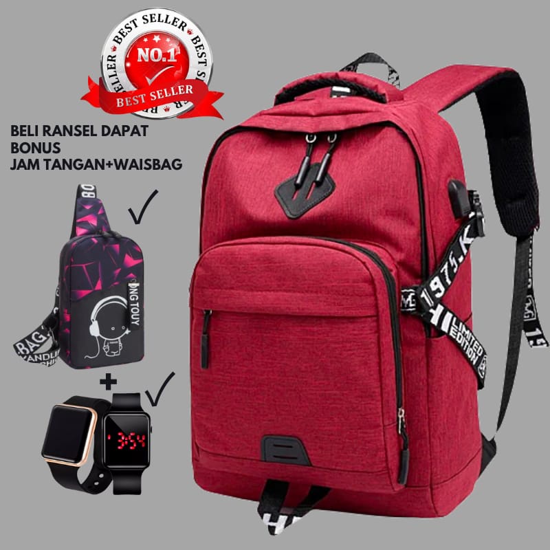 mulai dari tas sekolah,tas kerja,tas kuliah dan berbagai macam tas lainya untuk keperluan sehari hari produk yang kami tawarkan di produksi oleh pengrajin lokal yang berkulitas hargapun terjangkau dengan memiliki kualitas terbaik dikelasnya === =========================================== spek Tas bahan : dinir(kanvas) (SETIAP WARNA YANG DI PESAN SUDAH SATU PAKET SAMA BONUS) size. : 30cmx47mx17cm *Motif di cetak Sablon Berkualitas *Tali Ransel Juga di lapisi Busa Yg tebal *sama Bagian Blakang Tas Juga ada Busa *bagian dalam ada saku laptop yang di lapisi Busa tebal Sehingga laptop aman *untuk Panjag Tali Ransel Bisa di atur Sesuai Keinginan Dan senyaman nya saat di pakai *lapisan dalam Saten dan setiap sisi di Bungkus agar Rapi *kemiripan barang 80-95 % dengan foto yang tertera *produk :lokal *berkemungkinan ada sedikit perbedaan warna di karenakan pencahayaan di saat pengabilan foto *pengiriman mulai dari hari senin-sabtu ( minggu dan hari besar pengiriman libur)