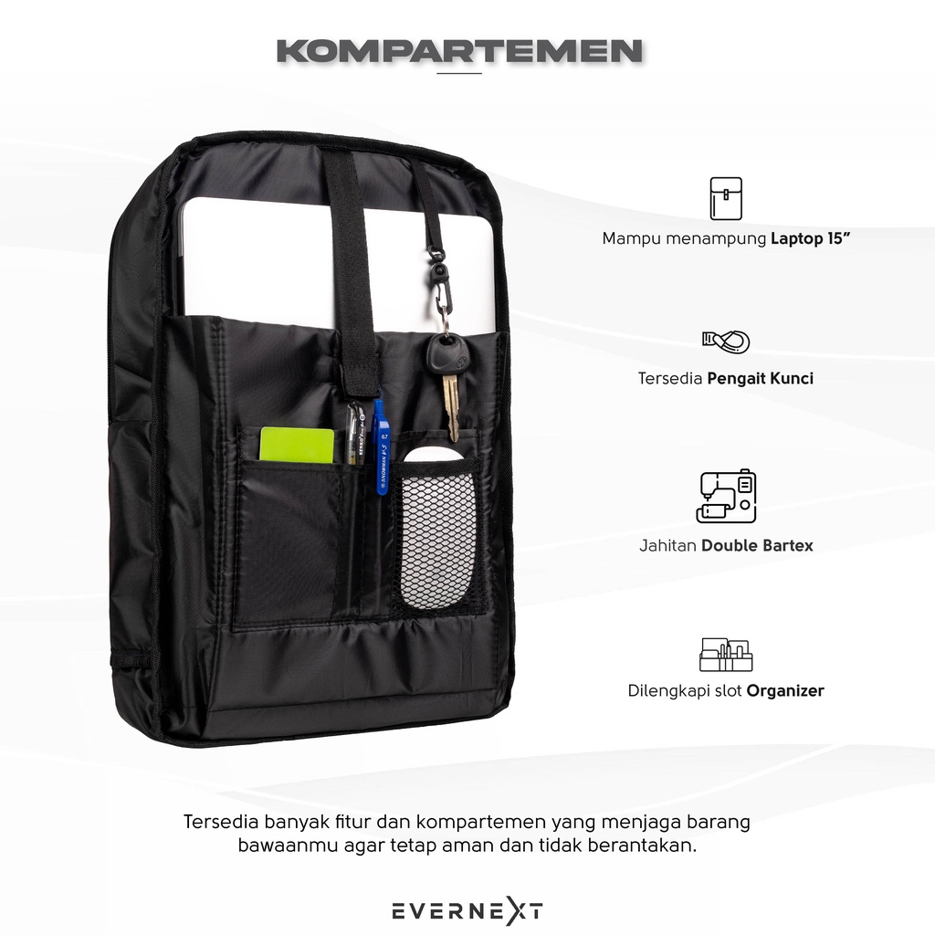 SPESIFIKASI: Berbahan dasar Cordura 1000 (bahan awet, kuat dan tidak mudah sobek) Terdapat slot laptop di bagian dalam yang dilengkapi dengan karet penyangga Terdapat slot organizer di bagian dalam Terdapat hook untuk menggantungkan kunci di bagian dalam Tersedia 2 saku fungsional di bagian depan Tersedia 2 slot saku untuk botol minum. Dilengkapi slot raincover di bagian bawah backpack. Bagian panel pada punggung dilapisi busa 5mm dan panjang tali ransel bisa diatur sesuai keinginan.