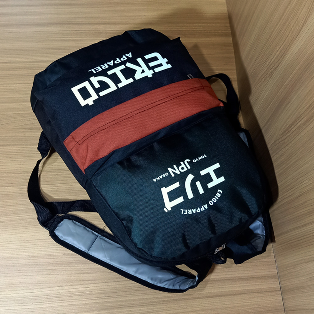 Bahan : poliester d300 Ukuran : tinggi 40 cm Lebar 26 cm tebal samping 16 cm