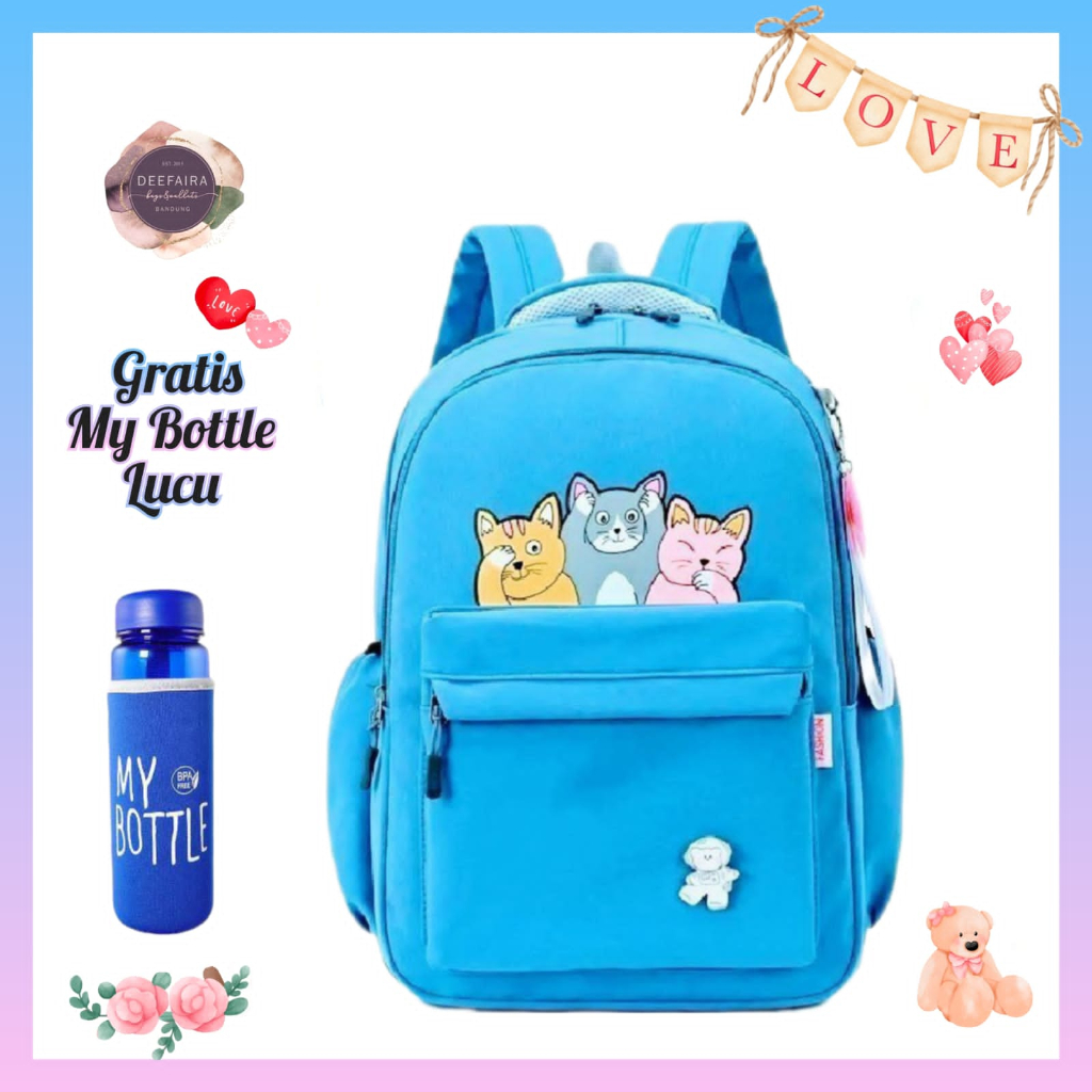 Detail Tas Ransel Sekolah Anak Perempuan Untuk Sd & Smp Model 3 Little Cat Free Botol Minum Lucu