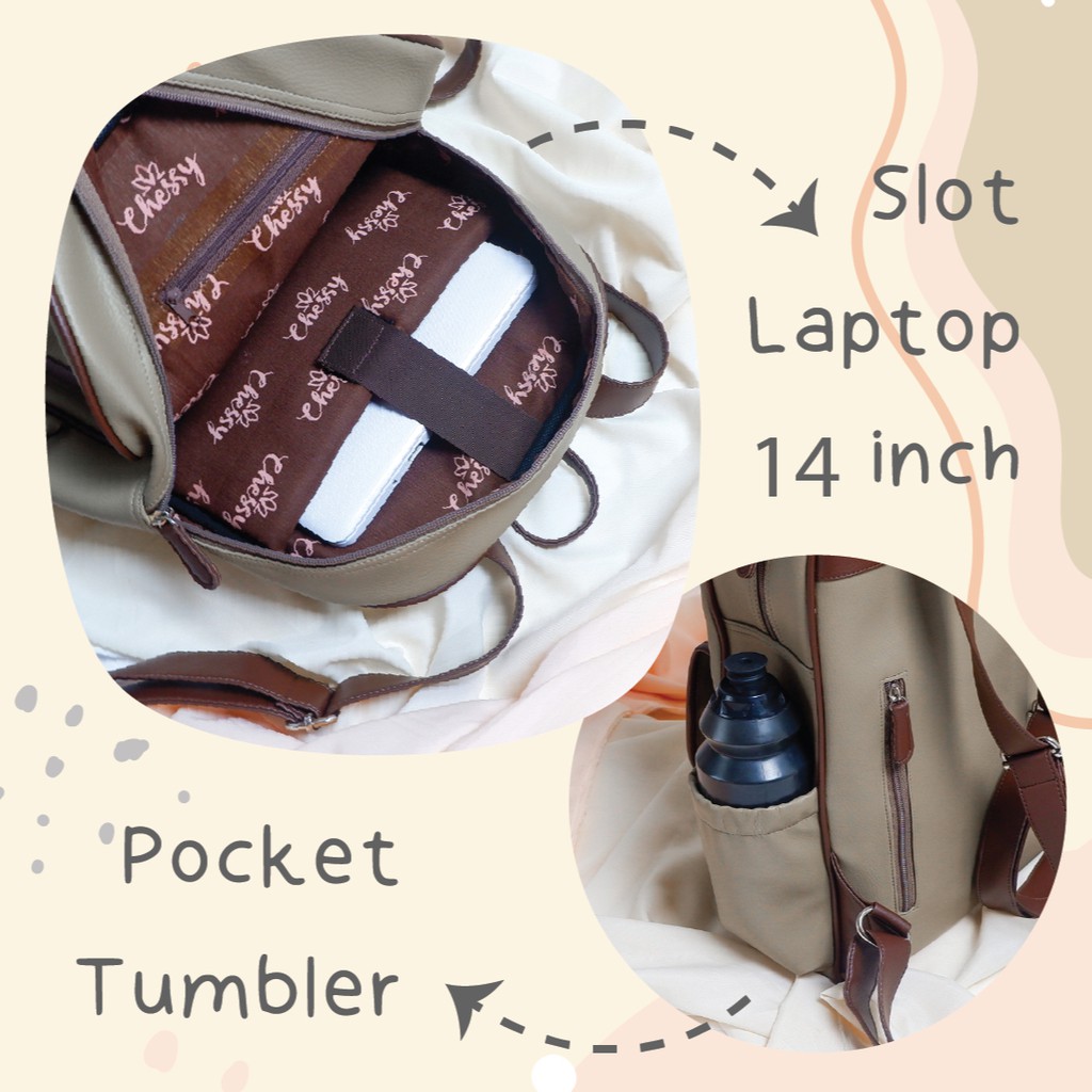 Deskripsi produk : ๐ผ 1 resleting utama ๐ผ 1 resleting kecil di dalam ๐ผ 1 slot laptop berbusa tebal dan empuk ๐ผ 1 ruang di bagian depan luar berpenutup magnet ๐ผ 1 resleting di bagian depan ๐ผ 2 slot saku tumbler/tempat minum berkerut di bagian kanan dan kiri ๐ผ 1 resleting bagian belakang di luar ๐ผ Bahan Virotex ๐ผ Muat Laptop sampai ukuran 14 inch (jika model laptop tebal akan ngepres di bagian slot laptopnya, kalau model laptop slim tidak ngepres).