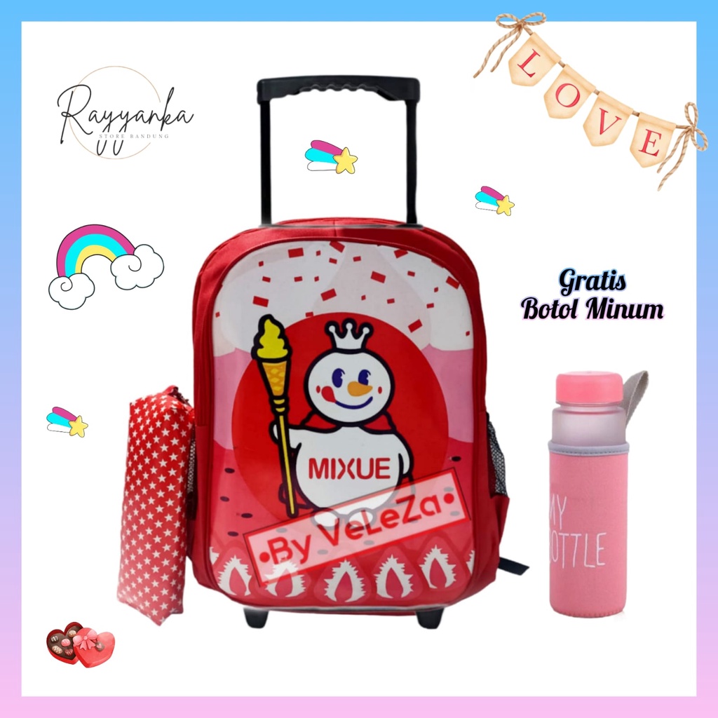 Tas Ransel Troli Anak Perempuan Untuk Sekolah Paud Tk Sd Model Ice Pinki Gratis Botol Minum Lucu