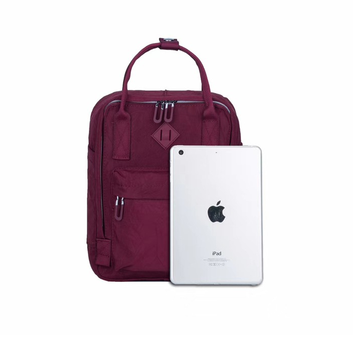Size MINI tinggi 25cm x panjang 21cm x lebar 8cm Material Nlyon Polyester (Bahan Mirip Kipling) Water resistance Muatan Banyak (pocket samping botol dan payung) full print lapisan dalam Slot Laptop 10inch max IPAD