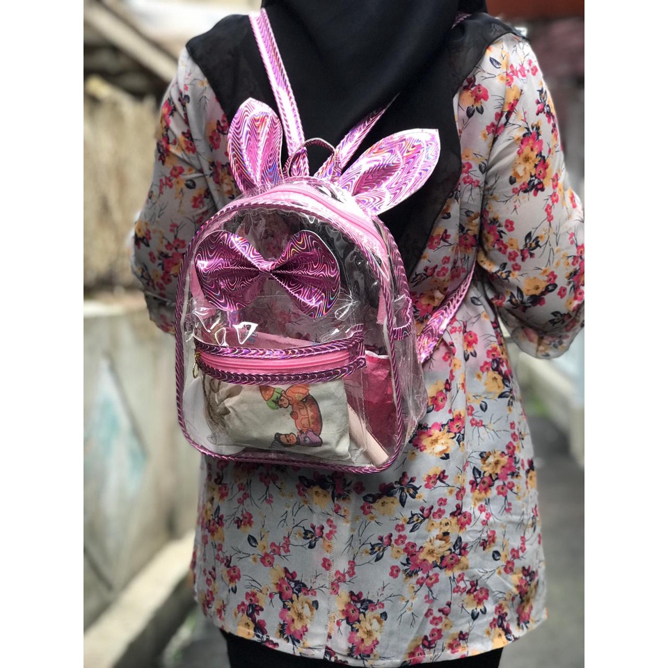 Detail Tas Ransel Wanita Mini Bunny Pvc Transparant Hologram Tas Gendong Anak Remaja