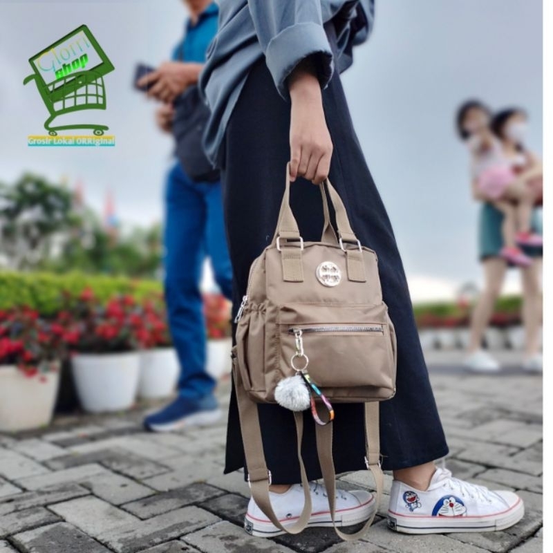 Detail Tas Ransel Wanita Mini Tas Ransel Jinjing Ransel Multifungsi Gue Gantungan Pompom tali love