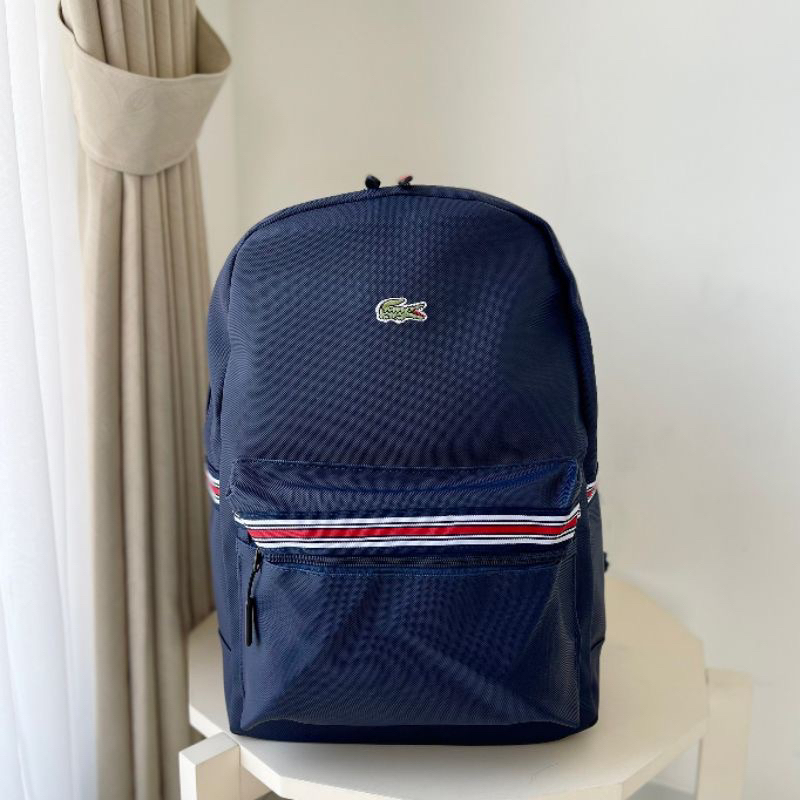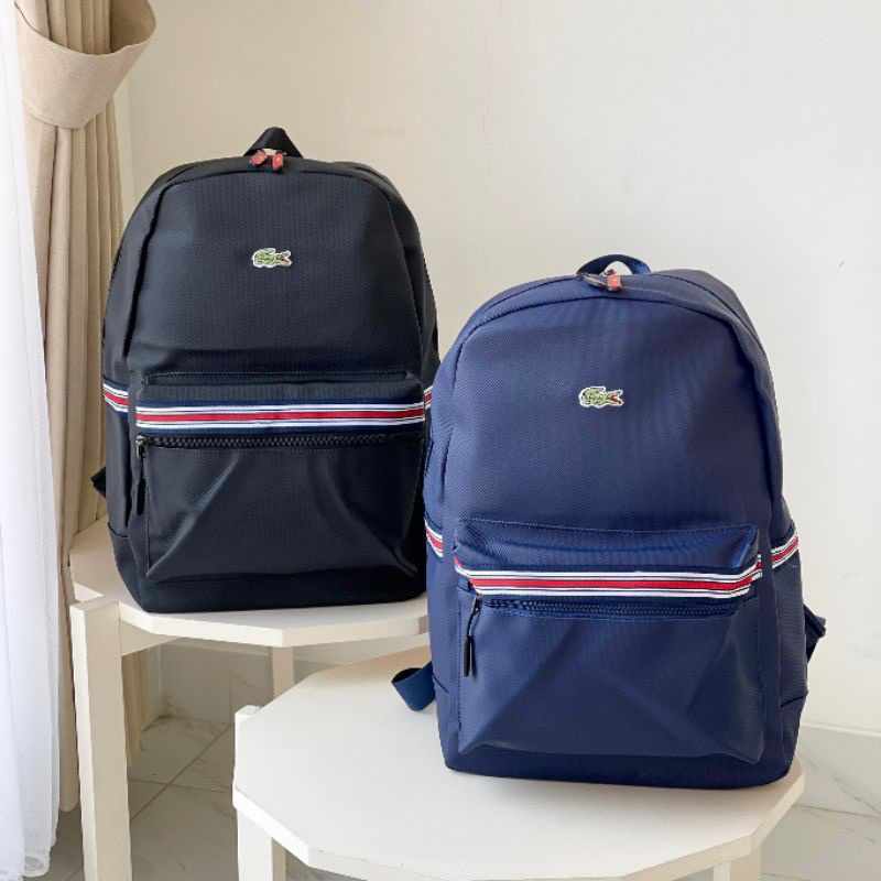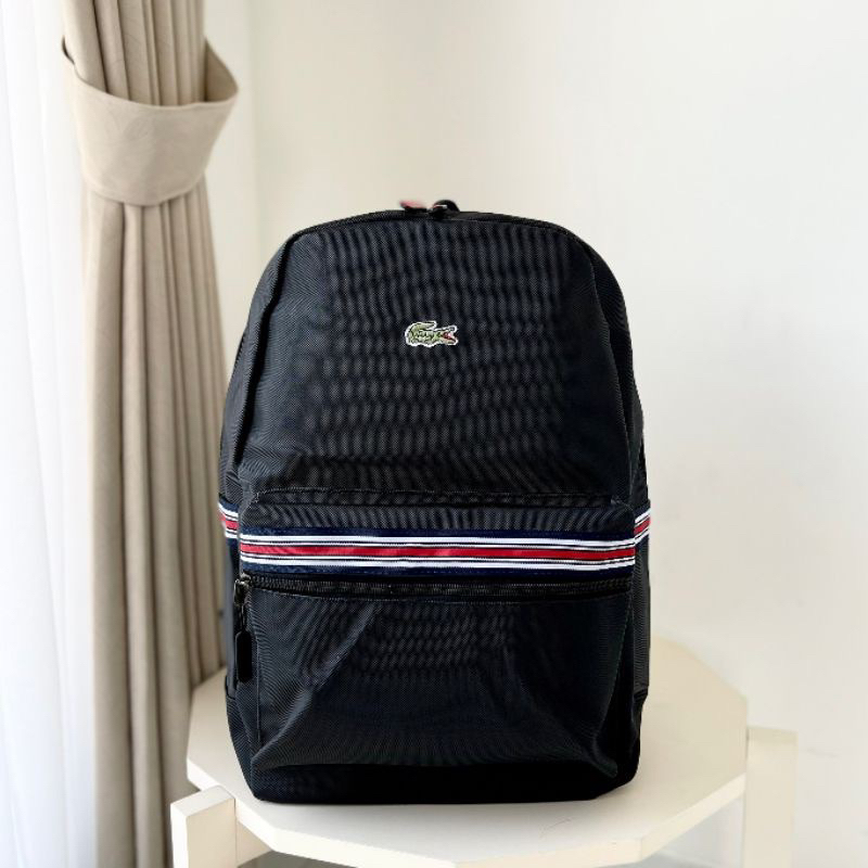 LACOSTE Rucksack Size : 27 x 13 x 40 Material : PVC Color : Black / Navy Code : LCB027