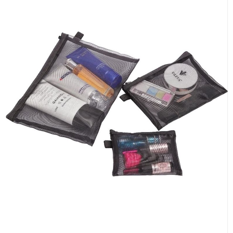 Tas Rias Jala dengan Ritsleting Tembus Pandang Paket Tas Penyimpanan Esensial Kecantikan 3 (S/M/L) Organizer untuk barang-barang harian Anda, menjaga barang-barang Anda tetap bersih dan rapi dalam satu tas, menghemat ruang tanpa menambah volume Tembus Pandang - lihat item di dalamnya dengan cepat, alih-alih menggali melalui dompet gelap Simpan di dalam koper, tas tangan, atau tas jinjing Anda untuk akses cepat dan mudah ke semua barang pribadi Anda Dapat dengan mudah melihat apa yang ada di dalam tas untuk keperluan Praktis dan menjaga agar barang tetap teratur - tas penyimpanan jaring sangat bagus untuk perlengkapan makeup, lipstik longgar, perlengkapan kuku, kabel, pengisi daya, kabel untuk elektronik, kosmetik dan kwitansi, Ideal untuk perjalanan, liburan, perjalanan bisnis, gym, berkemah, pengaturan kamar mandi, dan aktivitas luar ruangan Detail Tas makeup jaring Kantungnya tipis tapi kokoh dan tidak tipis Ritsleting bekerja dengan baik Pengerjaan indah, segel rapi dan kokoh Terbuat dari jaring nilon, bernapas dan mudah dibersihkan Hadir dalam berbagai ukuran dan bernapas serta cukup tahan lama untuk bepergian S: 3,9 * 5,3 inci M: 5,3*7,5 inci L: 7,5*10,6 inci Gunakan tas jala yang lebih besar saat bepergian dan tas yang lebih kecil gunakan di dompet Fitur & detail 3 UKURAN BERBEDA: Kecil: 3,9 * 5,3 inci; Sedang: 5,3 * 7,5 inci; Besar: 7,5 * 10,6 inci. 3 ukuran tas kosmetik hitam yang berbeda, Anda dapat menerapkannya untuk penggunaan yang berbeda, untuk memenuhi kebutuhan harian Anda yang beragam KUALITAS TINGGI: Terbuat dari jaring poliester berkualitas tinggi yang mudah dibawa dan tahan lama, Ringan. Kantong berstruktur jala mudah dibersihkan, begitu juga persediaan perjalanan DESAIN SEMPURNA: Tas jala dengan ritsleting ini dirancang transparan, Anda dapat melihat barang yang ada di dalamnya secara langsung, menghemat waktu Anda saat menemukan barang Desain jala memungkinkan apa pun yang basah menjadi kering, cepat kering, dan mudah dibersihkan MULTIFUNGSI: Dapat diterapkan sebagai tas kosmetik, tempat pensil, dompet koin dan tas travel organizer dan sebagainya, yang dapat memberi Anda kenyamanan dalam kehidupan sehari-hari Anda