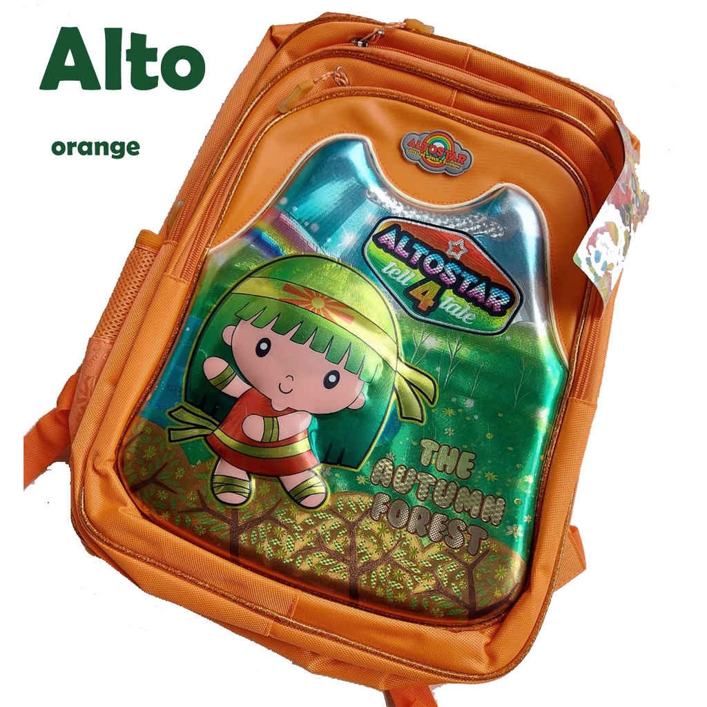 Tas Sekolah Alto Star original pemakaian TK - 6 SD bahan nylon kuat bahan depan embos viber ukuran 29x18x40 3 ruang resleting Free Cover hujan terdapat penyimpanan cover hujan bagian belakang bawah. tali kuat dan tebal bartex lihat video untuk asli produk